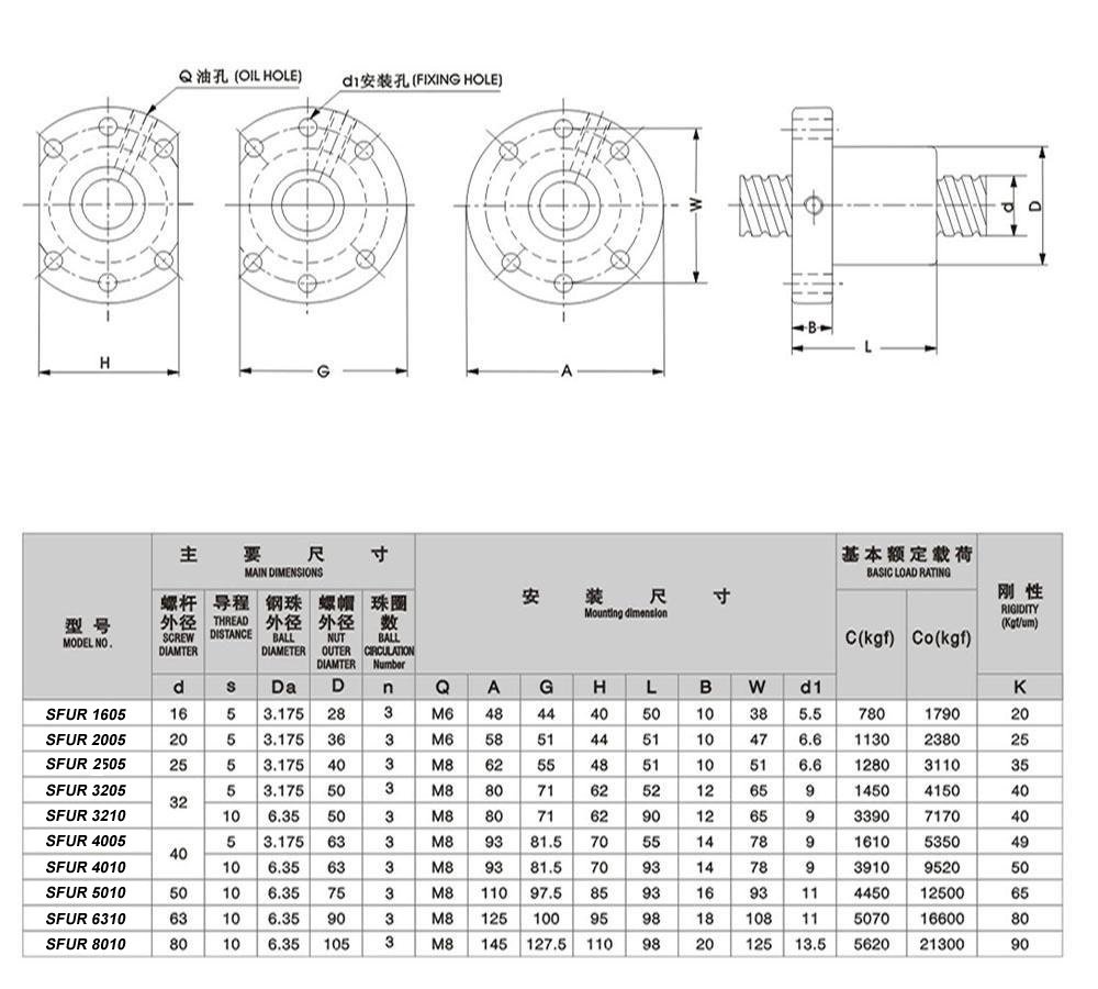 The SFUR xxxx series threaded shaft nut and the SCR xxxx series threaded shaft< are reliable drive components for movements fixed with linear bearings . Ball screws with 5mm pitch and 10mm pitch enable complete movement in conjunction with elements such as servo motors, stepper motors,  and geared motors. Since the screws are manufactured using a rolling process, they have a surface hardness of 55 HRC.  Thanks to the felt on both sides of the steel nuts, dust is kept out. With 4 rows of ball bearings, it has high axial force resistance. Flanged series are secured to the moving part using the “nut body” by gripping the flange. They maintain their precision even at high speeds and are long-lasting. Manufactured using the rolling method, they have a surface hardness of 55 HRC.